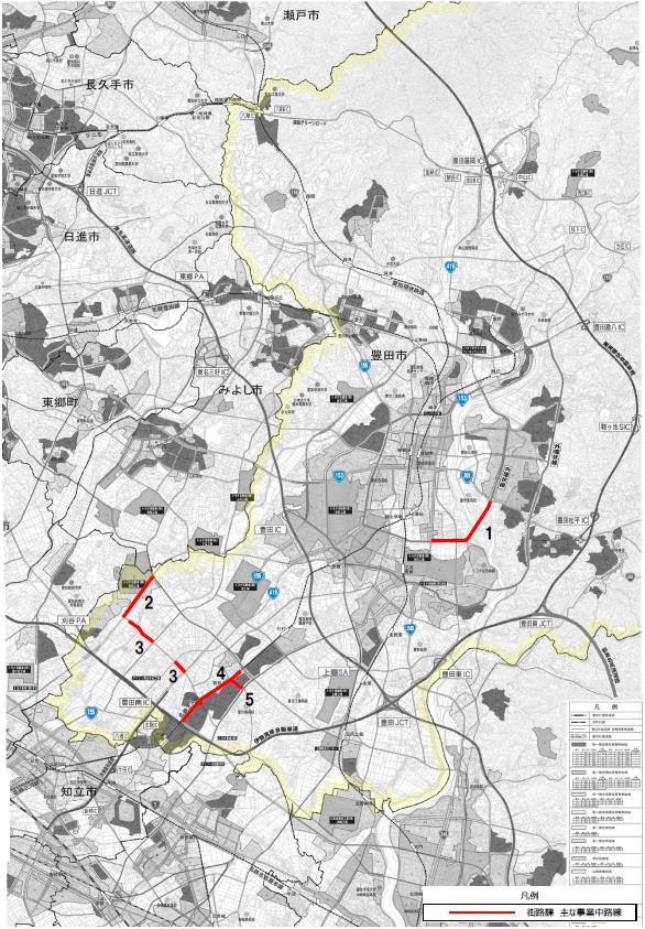 1.高橋細谷線 2.豊田刈谷線 3.西岡吉原線 4.名鉄三河線若林駅付近連続立体交差事業 5.若林東西線
