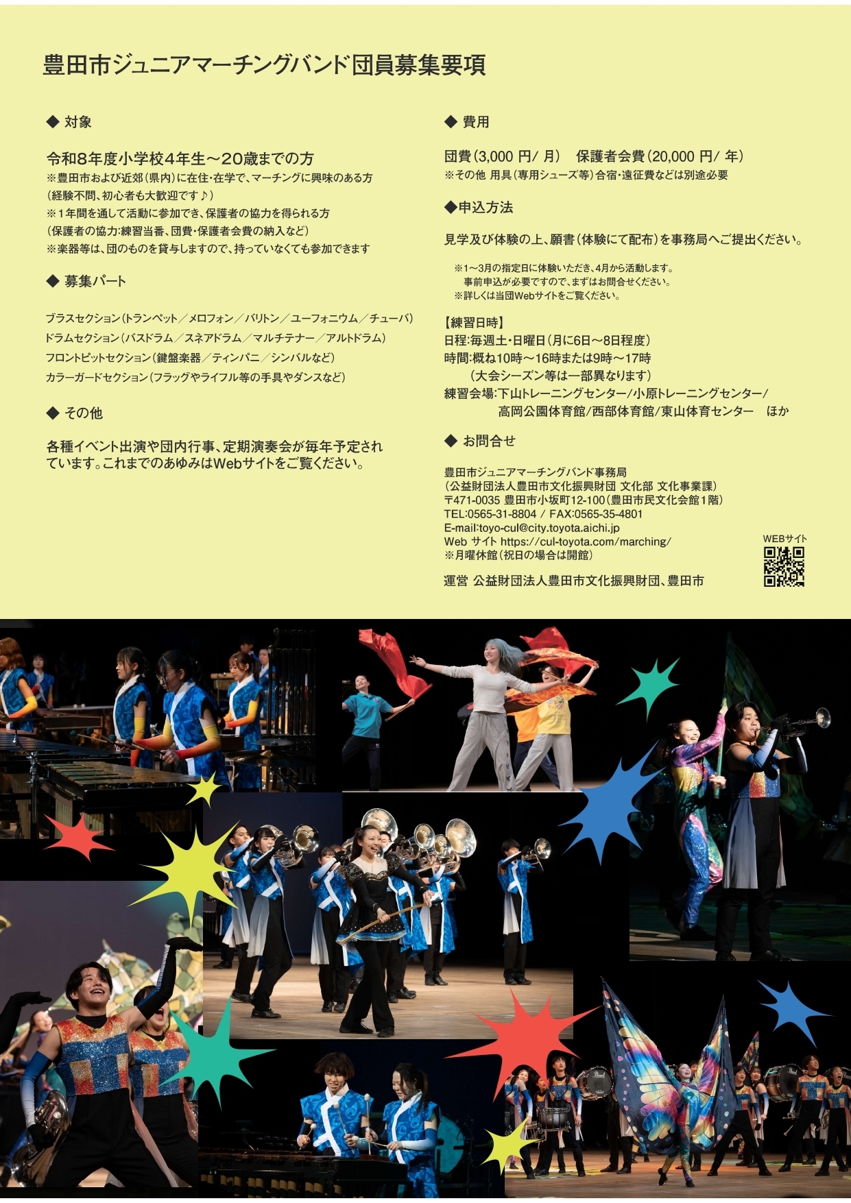 豊田市ジュニアマーチングバンド事務局(豊田市文化振興財団 文化事業課)電話番号:0565-31-8804