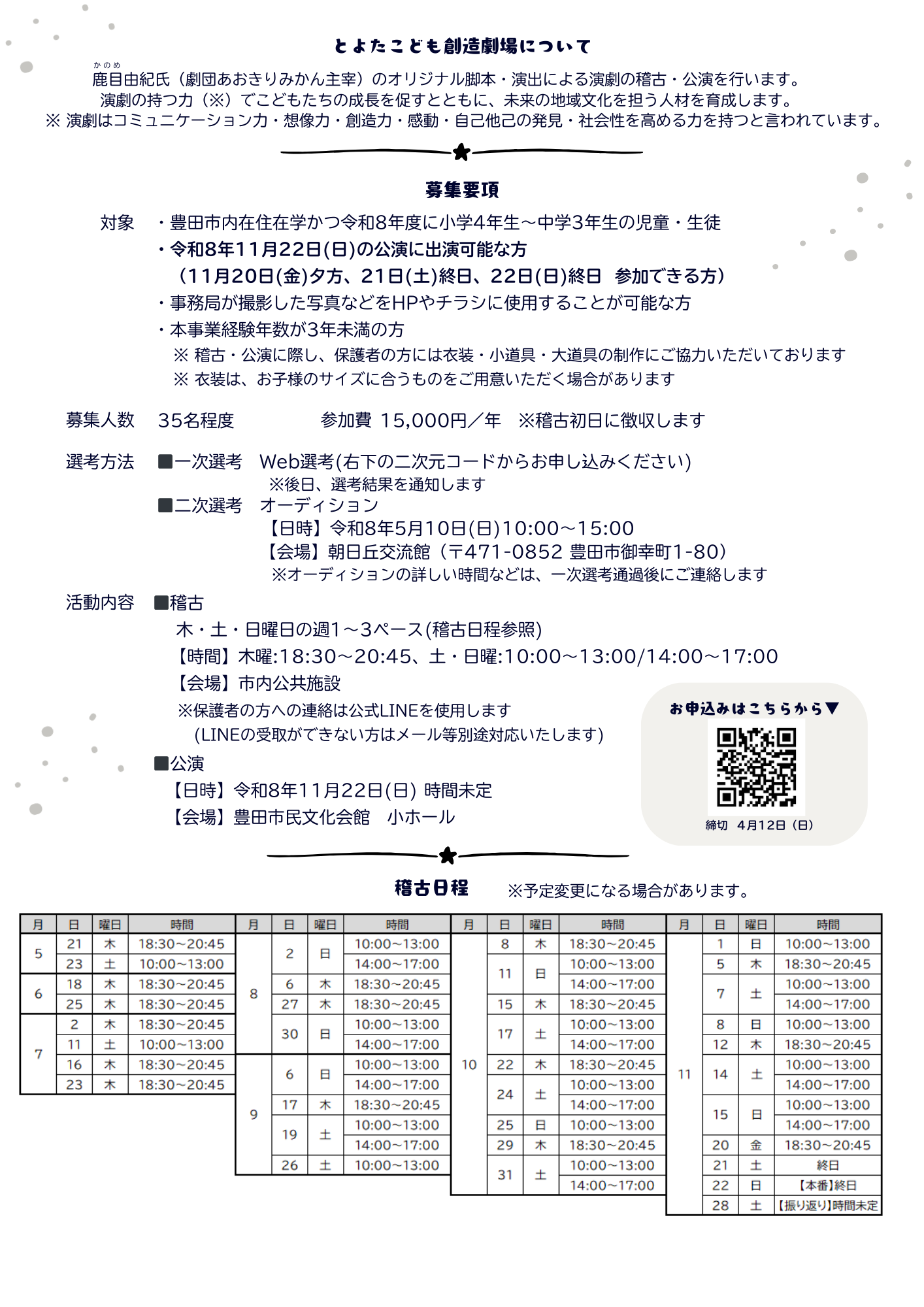 とよたこども創造劇場 団員募集のお知らせ