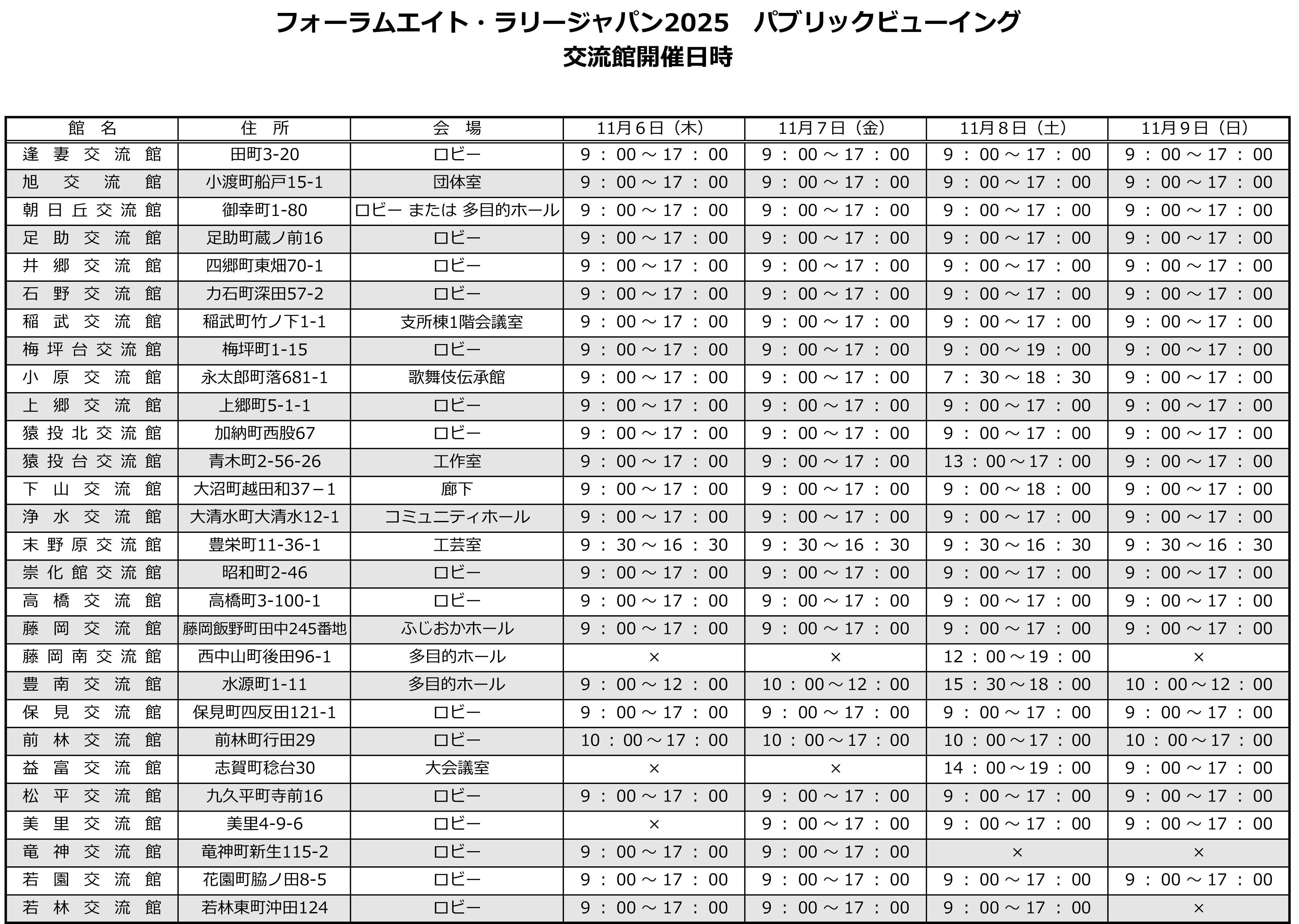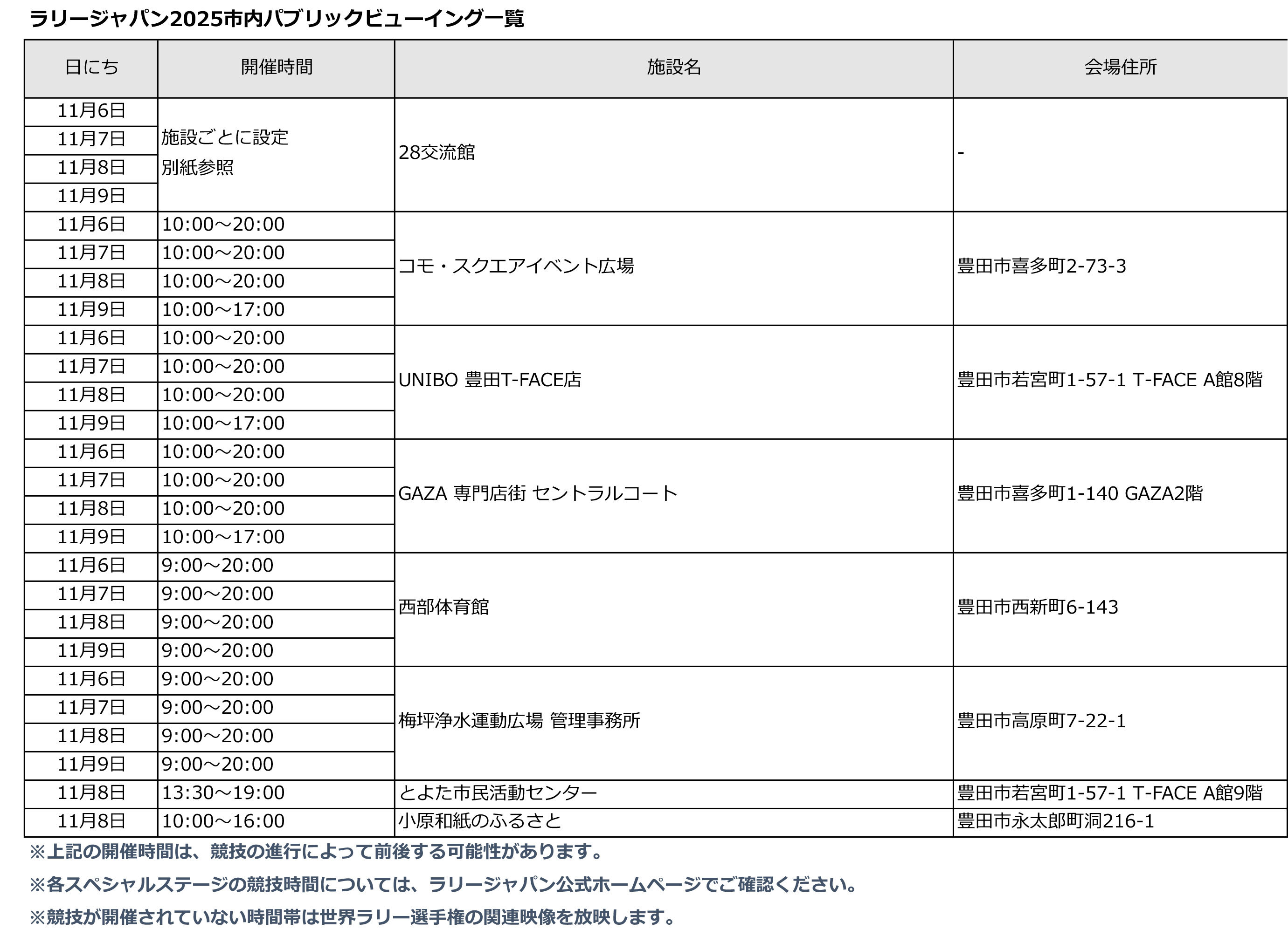 (備考)各スペシャルステージの競技時間はラリージャパン公式ホームページをご確認ください。