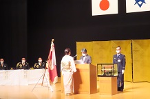 新入団員・再入団員・退職団員を任免し、功績のあった団員へ表彰の伝達をする式典です。豊田市消防団部長以上と、表彰の代表受領者が参加します。