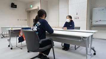 豊田市では就業体験を希望する大学生、高等学校生等に対しインターンシップを実施しており、令和6年度は男性5名、女性1名が消防業務に参加しました。参加した学生に対し、現役職員との意見交換の場を設け、女性特有の悩みや不安を聞いたり、アドバイスをすることで消防士として働くイメージを持ってもらいました。